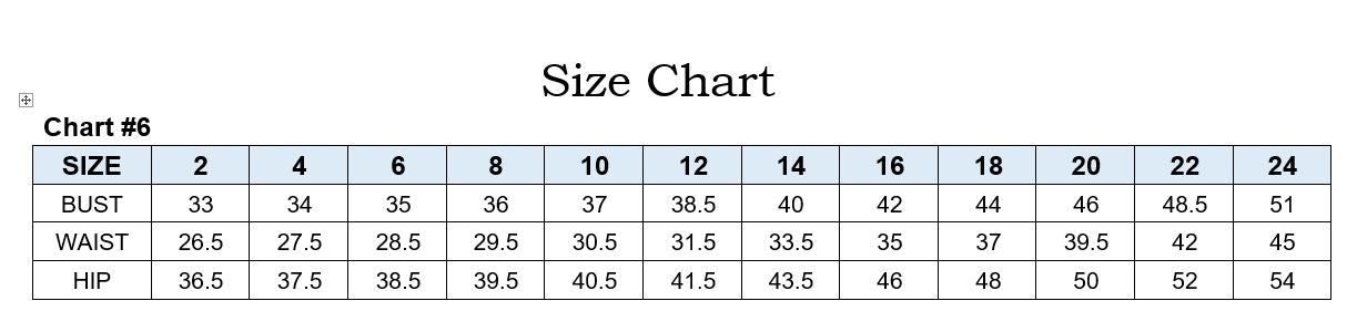 Each dress is made differently, so the size chart for each dress may vary. To find the correct size chart, look at the bottom of the product photos for that specific dress.